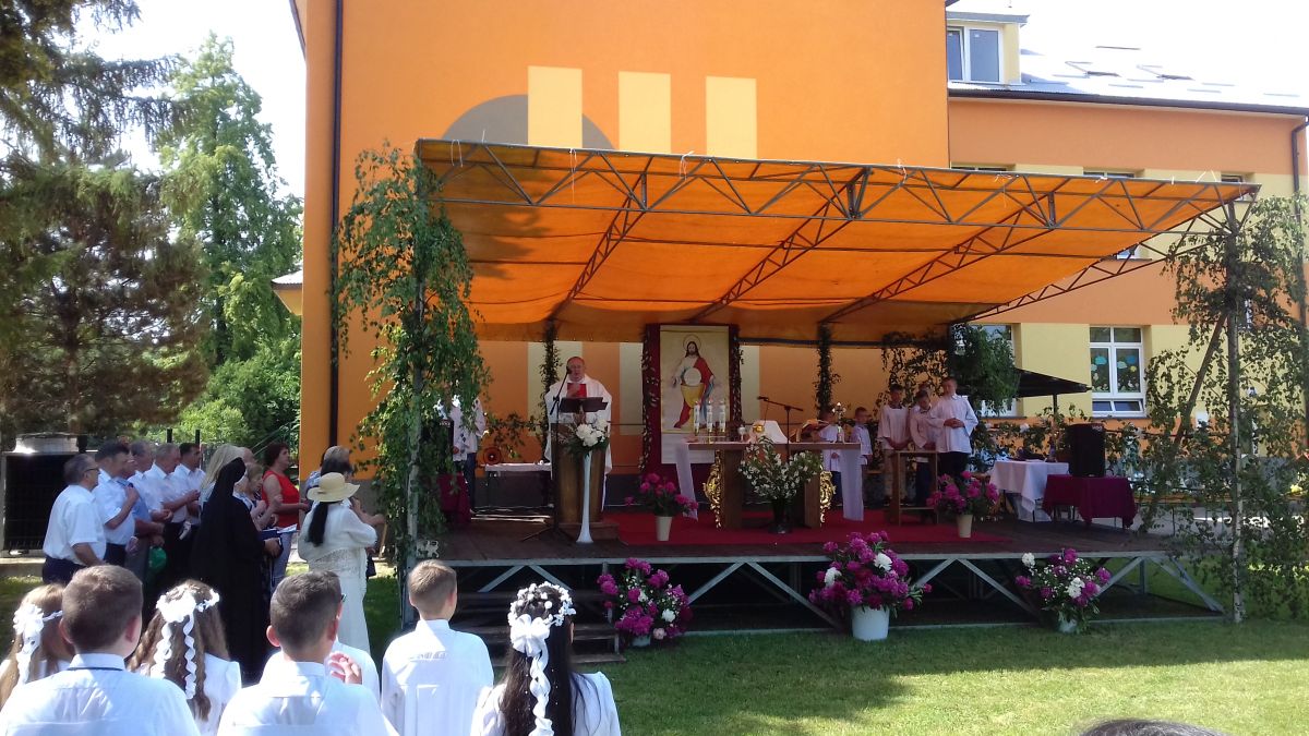 Tegoroczne Święto Bożego Ciała w naszej parafii, jak już w tradycji od kilku lat bywa znów znalazło oprawę poza świątynią. Tym razem msza św. została odprawiona na placu przy budynku Szkoły Podstawowej. Proboszcz wspomniał w homilii o jubileuszu 150 lecia założenia podstawówki w Nowosielcach, które to uroczystości będą mieć miejsce w ostatnią niedzielę czerwca. Po mszy ruszyła procesja w kierunku ulicy Nadbrzeżnej, gdzie zostały przygotowane kolejno cztery ołtarze. Ostatni znajdował się na wysokości nowego osiedla domków jednorodzinnych. Dopisała frekwencja, a szczególnie cieszy obecność młodych małżeństw z dziećmi, które brały czynny udział w procesji. Nie zawiodła również pogoda – było ciepło i słonecznie.