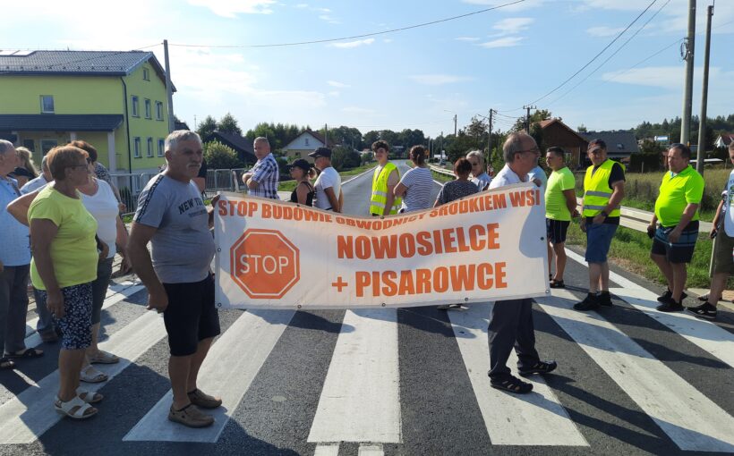 18 sierpnia 2024 roku o godzinie 16 rozpoczął się protest mieszkańców na drodze krajowej. Na przejściu dla pieszych koło żłobka w Nowosielcach grupa około 80 mieszkańców Nowosielec i Pisarowiec przechodziła blokując ruch pojazdów. Wstrzymanie ruchu na około 15 minut kończyło się 5 minutowym przepuszczaniem pojazdów. Większość kierowców podchodziła ze zrozumieniem do tych utrudnień, a na odjezdnym życzyli nam osiągnięcia zamierzonych celów. Blokada drogi w Nowosielcach wywołała reakcję sanockiej drogówki, która przez okres protestu kierowała ruch pojazdów od strony Krosna na objazd w kierunku Strachociny. Od strony Sanoka pojazdy kierowano na Nowotaniec, chociaż część kierowców próbowano wpuścić w okienka, kiedy protestujący schodzili z przejścia. Półtoragodzinny protest był pierwszym zorganizowanym wystąpieniem mieszkańców, sprzeciwiających się obecnym planom Ministerstwa Infrastruktury i GDDKiA. Frekwencja ze strony Pisarowiec została nieco zakłócona przez dożynki gminne odbywające się w Czerteżu. Uczestnicy zgromadzenia wykazali się bardzo dobrą dyscypliną, a sam przebieg kolejnych przemarszów miał charakter bardzo spokojny i zorganizowany. Organizatorzy tej akcji dziękują osobom, dla których poświęcenie dwóch godzin niedzielnego popołudnia nie było jakimś poważnym problemem. Jest szansa na to, że w przyszłości próba kolejnego protestu może również zakończyć się sukcesem. A to, czy będzie kolejny protest nie zależy już od nas, mieszkańców, tylko od władzy i zarządców drogi. Wydarzenie to stanowiło również test dla niektórych organizacji i środowisk, którym przypisuje się dużą aktywność na rzecz naszej lokalnej społeczności.